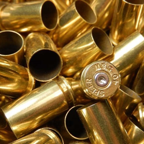 .40 S&W range pistol brass sorted and sold in packs of 250, 500, and 1000.