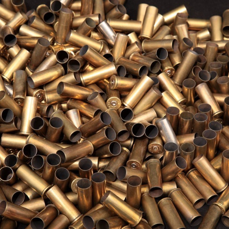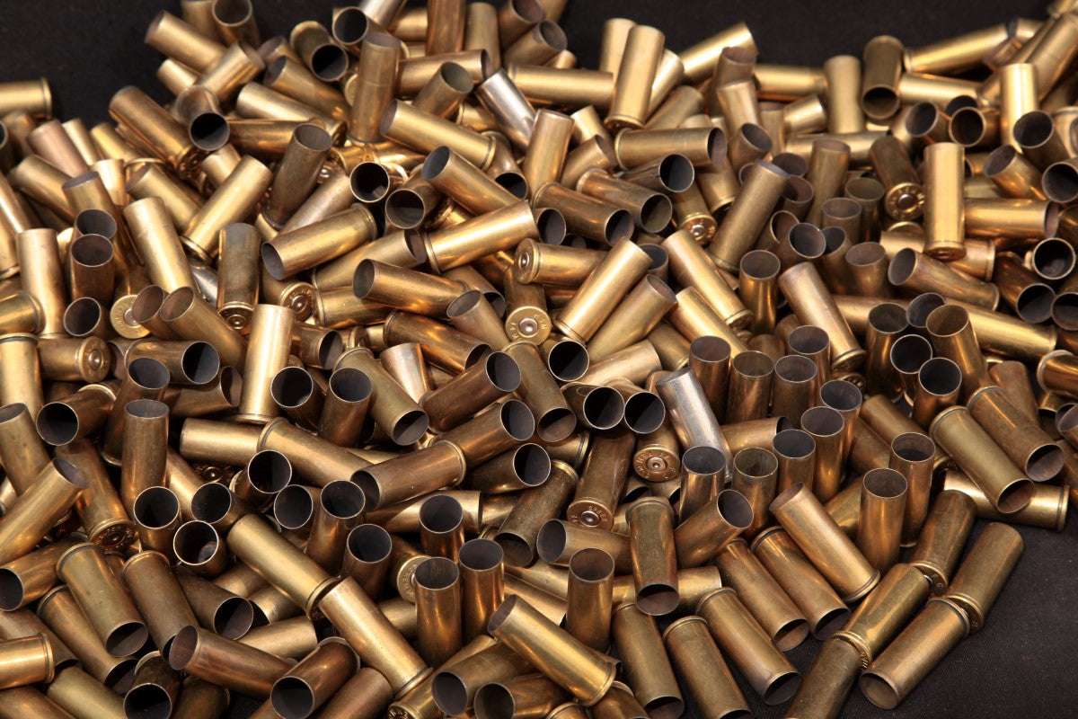 - Brass that still contains spent primers. Primers must be removed before reloading.